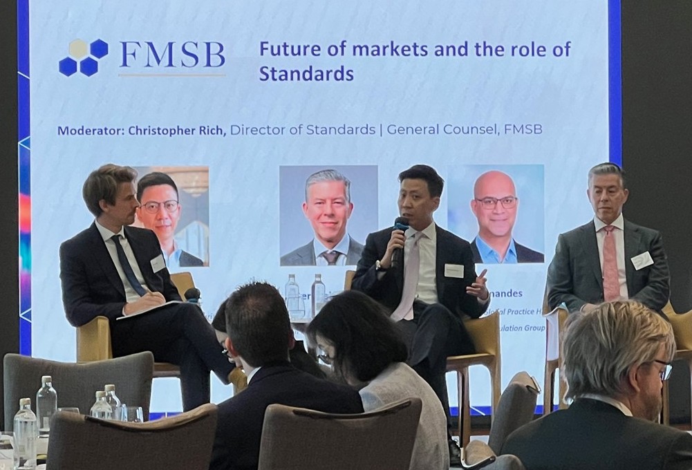 Panellists Tsz Cheuk Wong, Peter Stein, CEO of ASIFMA and the GFMA, and Carl Fernandes, Partner at Linklaters, then came together to discuss the role of industry standards in addressing future market challenges, in a panel moderated by Chris, drawing on themes from FMSB’s recent paper – Future of financial markets, before closing remarks, given by Myles.
