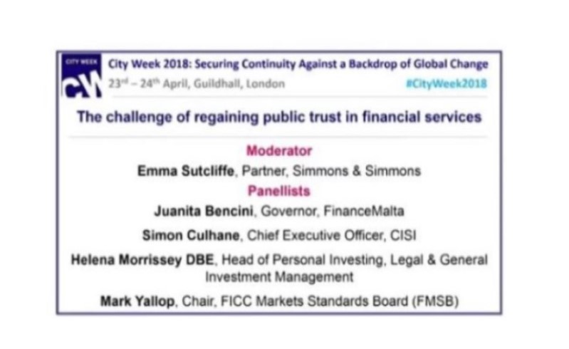 City Week 2018: Securing Continuity Against a Backdrop of Global Change – The Challenge of Regaining Public Trust in Financial Services Panel